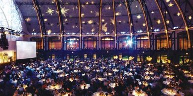 Dinner tables on the main floor of the AON Grand Ballroom at Navy Pier will seat ten guests for the Benjamin Wright Orchestra & Friends Gala stage performance program.